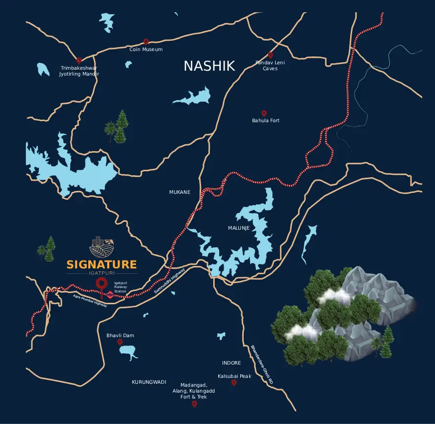 Signature brings together the best of modern design, open greens, and resort-inspired amenities to create a lifestyle that feels unhurried and deeply restorative. Here, every weekend becomes a meaningful escape, surrounded by clean air, panoramic views, and the luxury of disconnecting without compromise. With Igatpuri’s rising demand and seamless connectivity through the Samruddhi Corridor, Signature stands not only as a beautiful retreat, but as a thoughtful investment poised to grow in value over time.